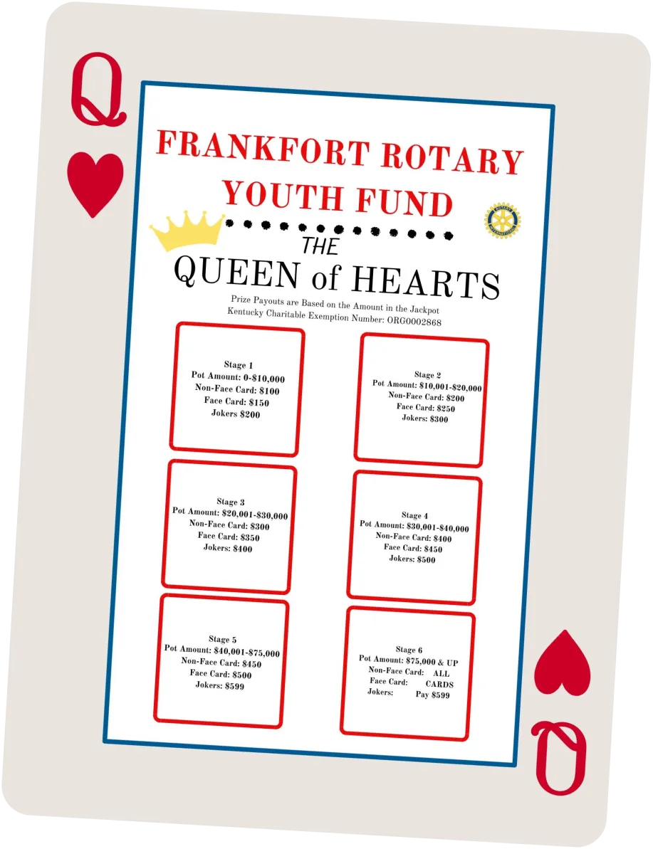 Every Thursday at 7 PM, the Queen of Hearts drawing delivers big excitement and the chance to win a growing jackpot. It’s more than a game—it’s a weekly event that brings people together and makes a difference.